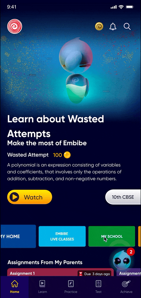 - The hero section would be the with the Embibe Live Class CTA clicking on which would show an introductory video of Live Classes as a whole.